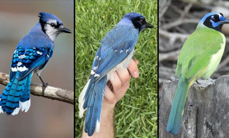 Blue jays (Cyanocitta cristata) and green jays (Cyanocorax yncas) are both types of corvids, a family of birds that also includes crows and ravens. Despite their similar names, blue jays and green jays aren’t very closely related. They don’t share a genus, and their lineages split about 7 million years ago.