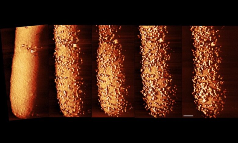 In the new study, published Sept. 29 in the journal Nature Microbiology, the team of researchers captured images of the antibiotic in action. Using a technique known as atomic force microscopy, the scientists passed a tiny needle back and forth over the bacteria to map out their shapes. This let them see how the bacteria changed as the polymyxin attacked.